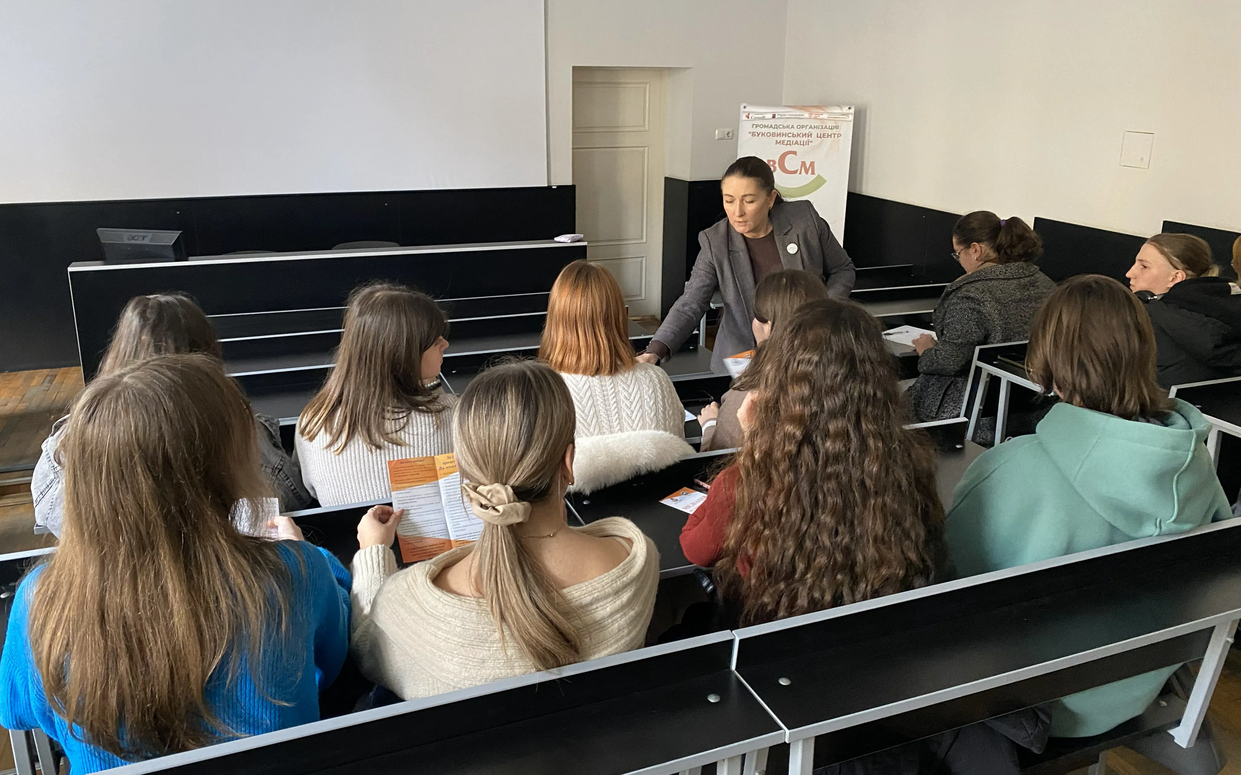 На інтерактивній лекції з елементами воркшопу говорили про можливості запобігання та шляхи вирішення конфліктів в освітньому середовищі, дискутували про принципи медіації та знайомилися з процедурою, практикували активне слухання й перефразування. Врешті запланували наступну зустріч-практикум провести в рамках діяльності гуртка «Лабораторія технік медіації!»